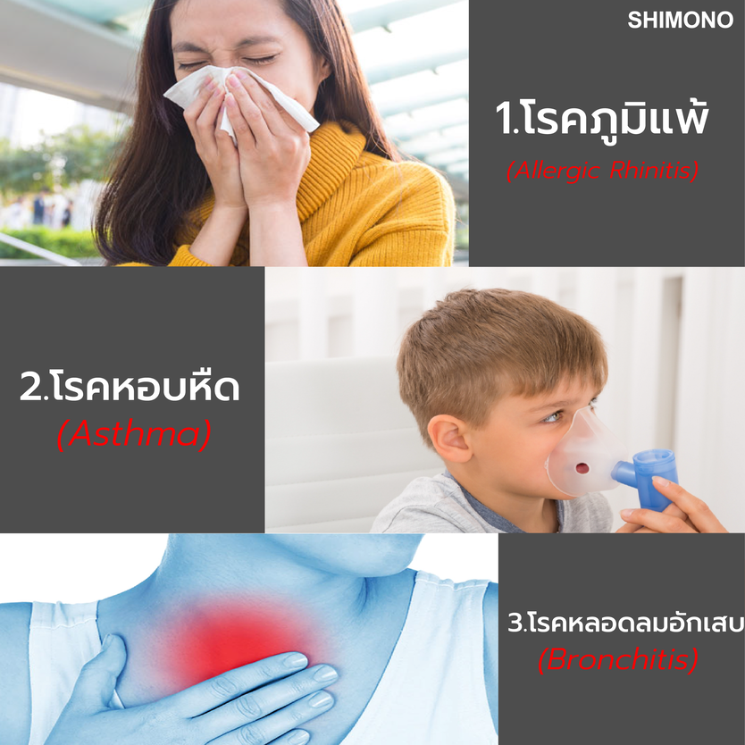 เชื่อหรือไม่คนไทยป่วยเป็นโรคภูมิแพ้มากกว่า10ล้านคนเรียกได้ว่าเป็นโรคยอดนิยมของโลกเลยสาเหตุของโรคภูมิแพ้เกิดจาก ฝุ่นละออง มลภาวะขนาดเล็กที่ประกอบไปด้วยสารพิษต่างๆ ส่งผลให้หายใจไม่สะดวก บ้างก็มีผื่นขึ้น และบางรายอาจจะถึงขั้นเสียชีวิต