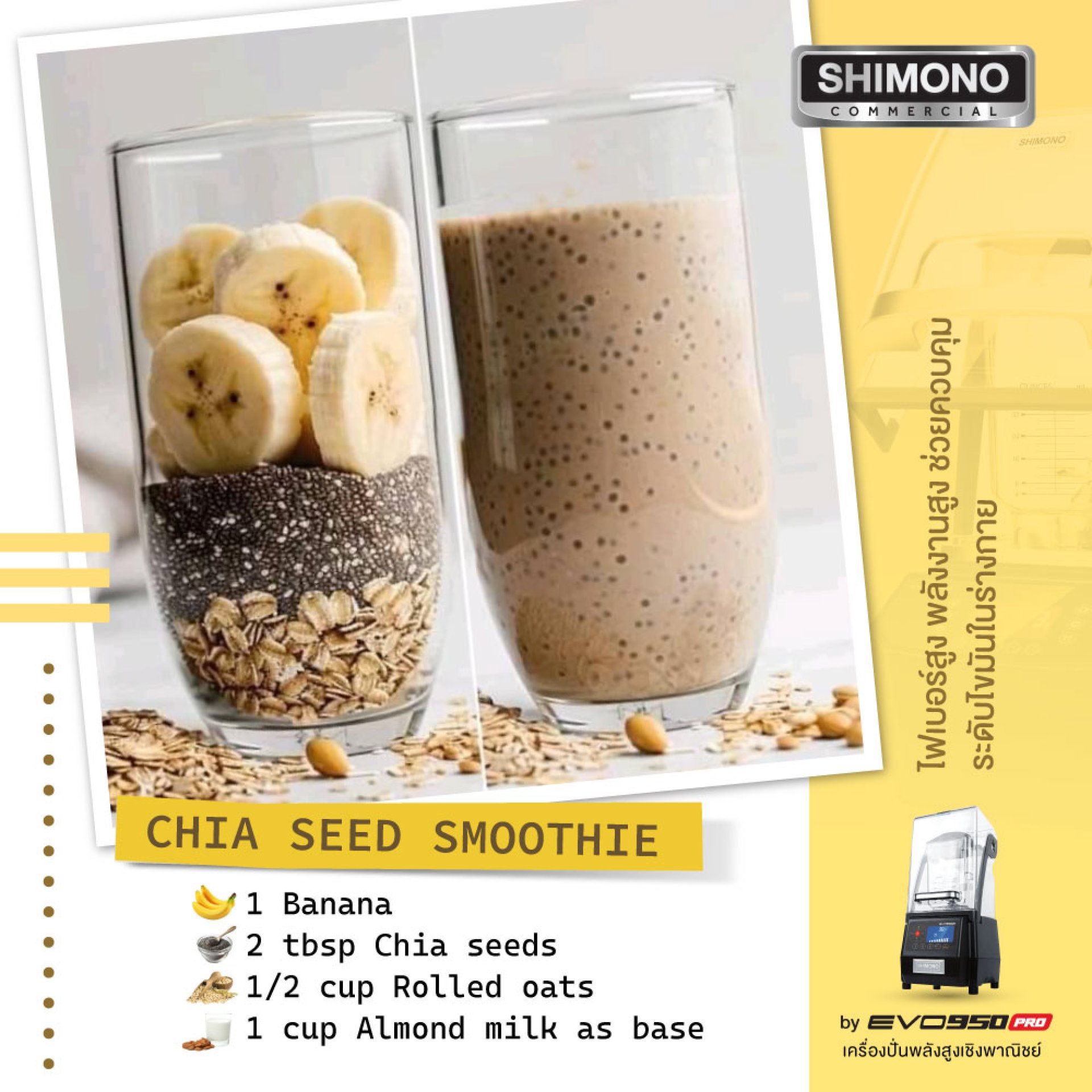 เมนู "CHIA SEED SMOOTHIE กล้วย Chia ข้าวโอ๊ต และนมอัลมอนด์" เป็นเมนูอาหารเช้าที่สมบูรณ์แบบสำหรับคนที่รักสุขภาพ ช่วยให้คุณมีพลังงานตลอดทั้งวัน และยังช่วยดูแลสุขภาพในระยะยาวอีกด้วย ลองนำสูตรนี้ไปทำทานกันดูนะคะ รับรองว่าคุณจะติดใจ