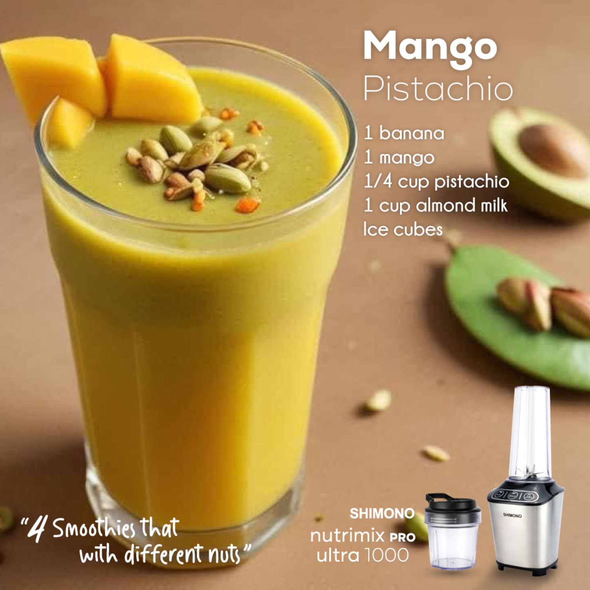 สูตรสมูทตี้เขตร้อน รสชาติแปลกใหม่ หากคุณเบื่อกับสมูทตี้รสชาติเดิมๆ ลองเปลี่ยนมาทำสมูทตี้มะม่วงพิตาชิโอ้ดูสิคะ รับรองว่าคุณจะต้องติดใจกับรสชาติหวาน หอม มัน อร่อยของมะม่วง ผสานกับความกรุบกรอบของพิตาชิโอ้ และความหอมมันของนมอัลมอนด์