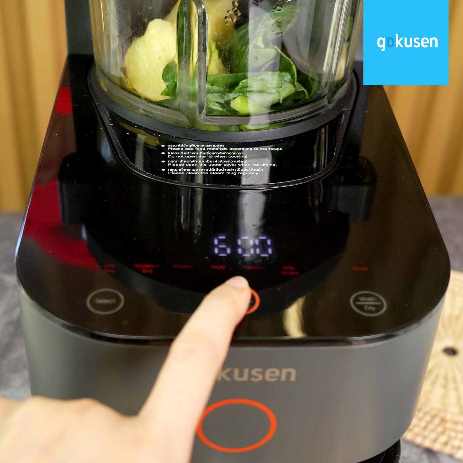 เครื่องทำน้ำเต้าหู้อัตโนมัติ Gokusen Gk-7800 ที่มาพร้อมกับโถบด/โถต้ม ครบเลย และความน่าสนใจของรุ่นนี้คือการล้างเองและฆ่าเชื้อโรคด้วยความร้อนอัตโนมัติหลังจากทำเมนูต่างๆ ในโถปั่น ไม่ต้องแยกโถ สามารถทำได้ทั้งเมนูอาหารคาว สมูทตี้ และน้ำนมธัญพืชต่างๆ ตอบโจร์ทสำหรับคนที่มีพื้นที่ครัวจำกัด สะดวก ไม่ต้องล้างเพียงเติ่มน้ำแล้วกดปุ่ม ดีไน์สวยงาม มาดูในส่วนของฟังก์ชั่นการปั่น